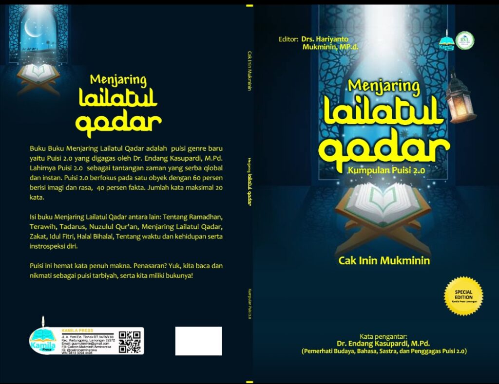 MENJARING LAILATUL QADAR(Kumpulan Puisi 2.0) Penulis:Cak Inin Mukminin Editor:Drs. HariyantoMukminin, M.Pd. Penyelaras Akhir :Aèf Gautama Putra Desain dan Layout:Embun MediaAllrights reserved ©2023Hak cipta dilindungi undang-undang pada penulis Cetakan Pertama, Juni 2023xii + 60 halaman: 13 x 20 cm ISBN : Diterbitkan:CV. Kamila Press LamonganJalan Ahmad Yani Ds. Tlanak RT.004/RW.003Kec. Kedungpring-Lamongan 62272Email: kamilapresslamongan24@yahoo.comgusmukminin@gmail.comWA: 0813 3094 449 […]